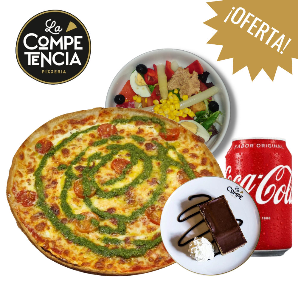 Pizza a elegir entre: De la casa, Margarita, Prosciutto, Romana, Nápoli o Campesina  o Espaguetis o Lasagna + Ensalada mixta + Postre o refresco de 33cL